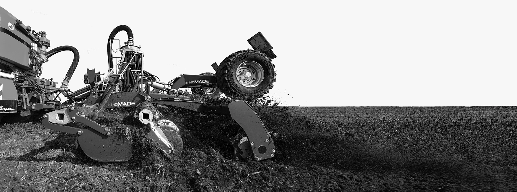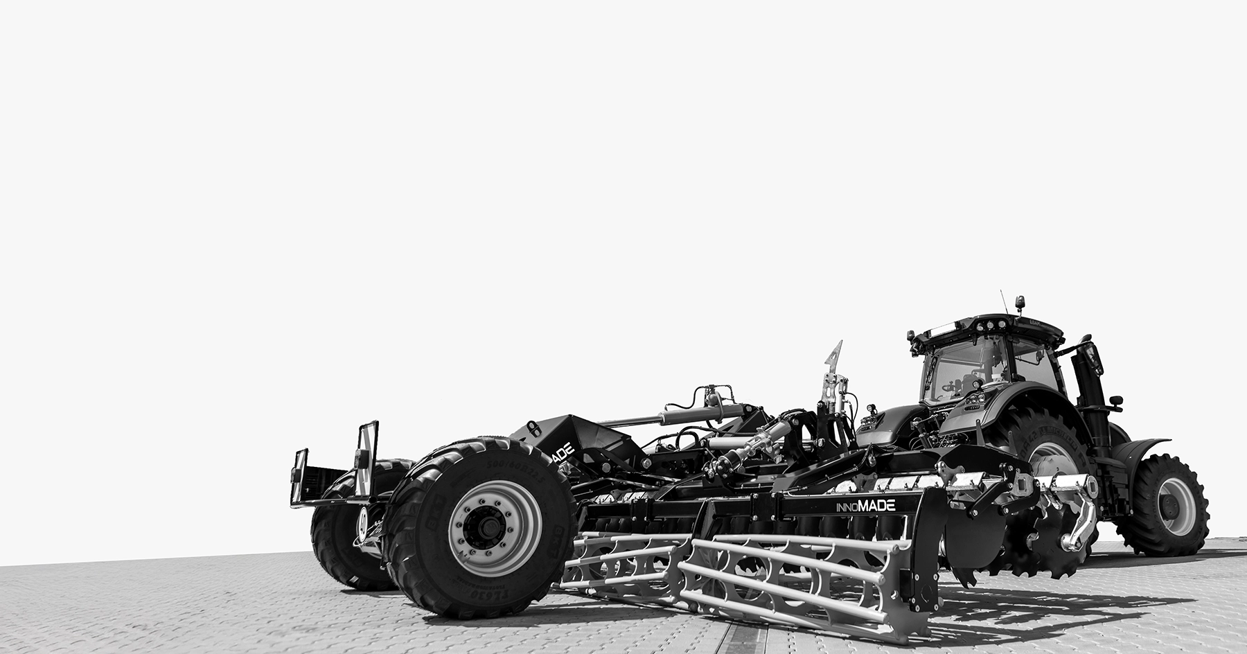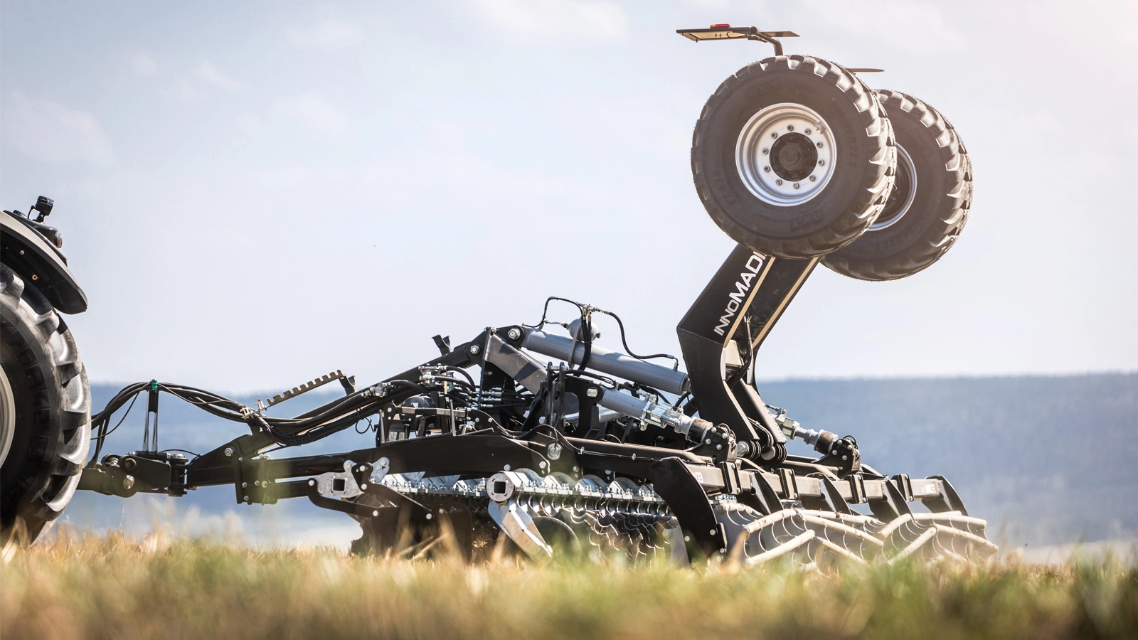 Mit ihrer hydraulisch einstellbaren Arbeitstiefe und einschwenkbaren Hubbegrenzern lässt sich die innoMADE Scheibenegge in kleinen Stufen für flache oder tiefe Bearbeitung einstellen. Besonders auf harten Böden profitiert die Scheibenegge von ihrem hohen Eigengewicht. Gefederte Nachlaufwalzen sorgen für eine optimale Saatbettbereitung.